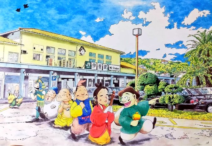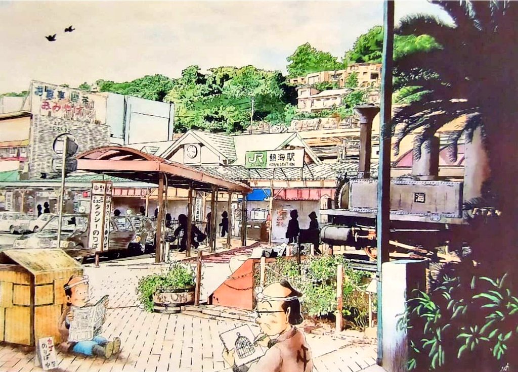 古い絵ですが、静岡県の駅(JR伊東線)シリーズです。熱海駅はかなり変わりましたね😉 伊東駅「福来たる」 熱海駅 「親を籠かきにした 」 伊豆多賀駅 「雨上がる」 #イラスト #Illustration
