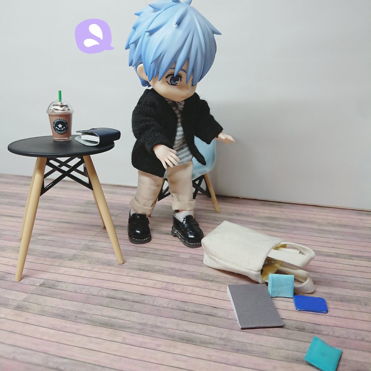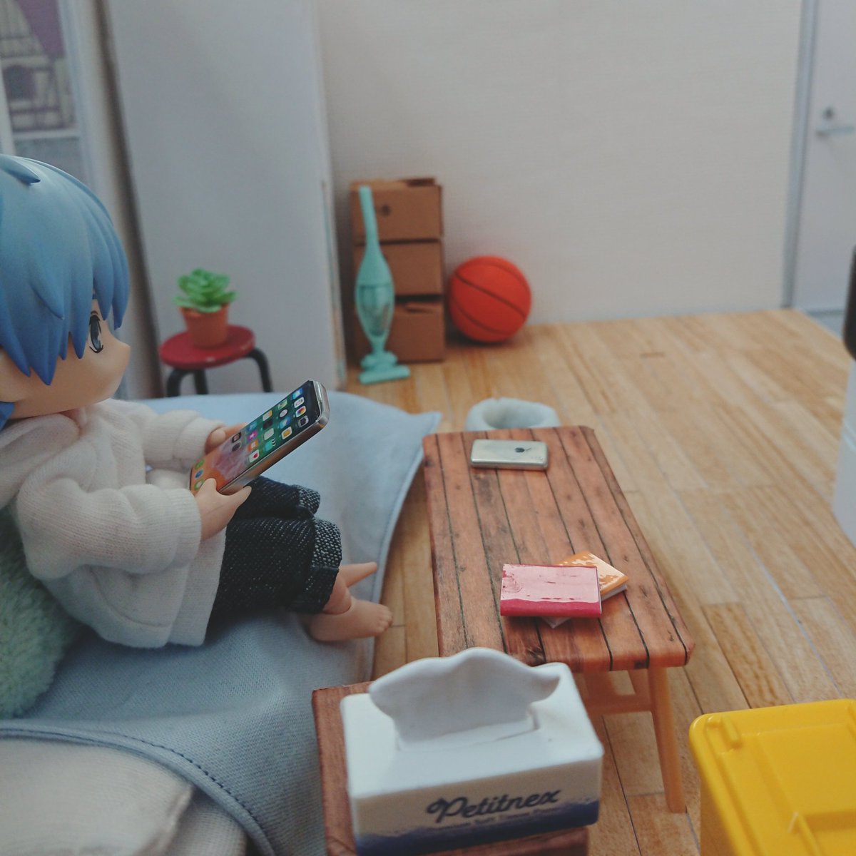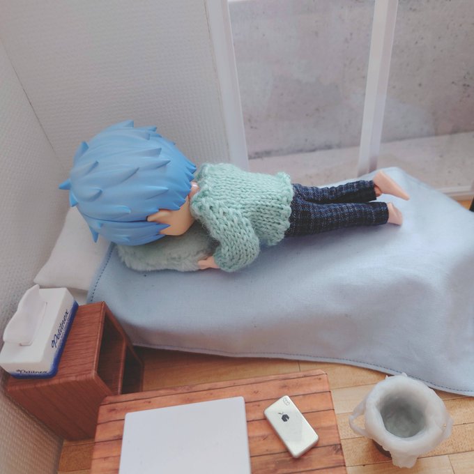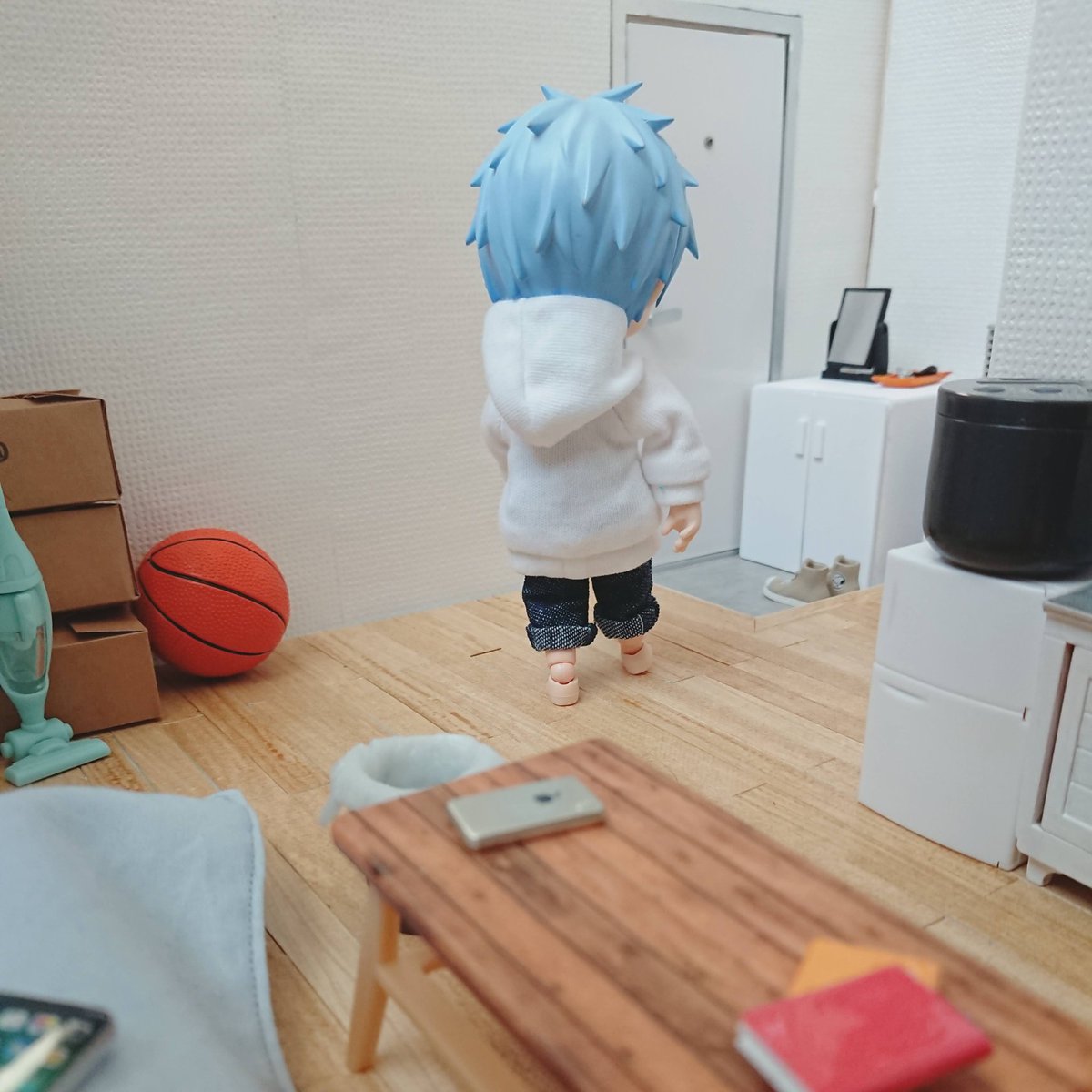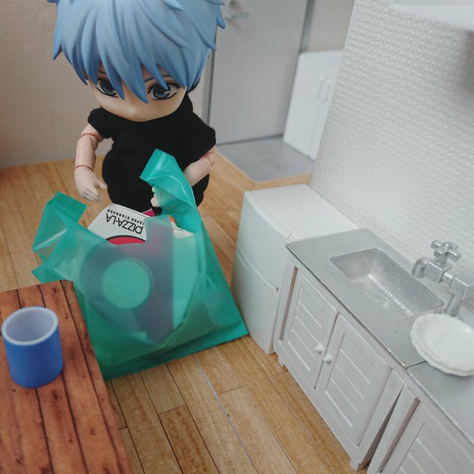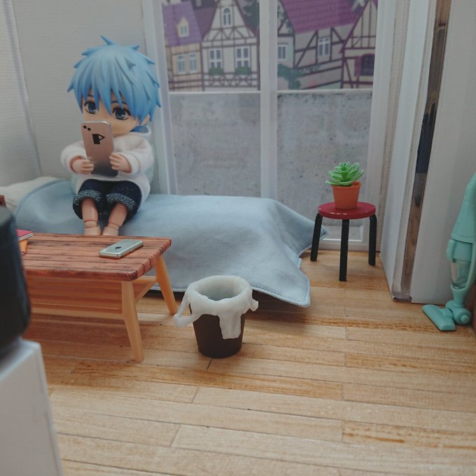 楽しかったです(ガサガサ) 雑誌?忘れ物ですかね ……これはっ!(熟読) 誠凛一年生ズは引っ越し当日お手伝いをしてくれようとしてたんだけど激狭物件なので無理だったという設定があったり なので引っ越し後にこうして遊びに来てくれました 誠凛一年生ズ大大大好き💕 #ひとり暮らしのオビツっち