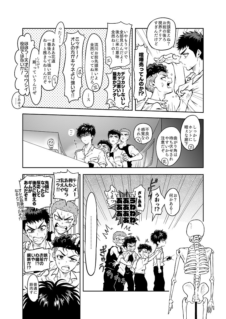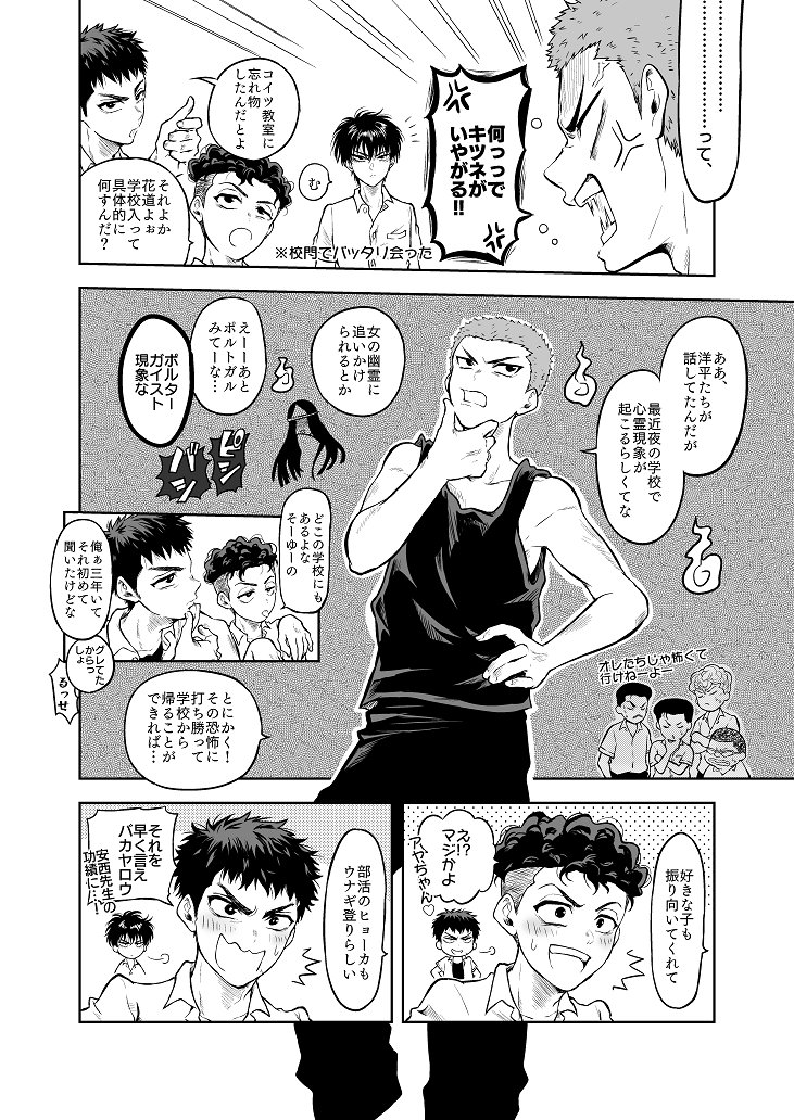 スパコミ新刊サンプル(3/3) CPなし、ホラー要素なしで赤点軍団4人が怖がったり喧嘩したりひたすらわちゃわちゃする話です! 通販:とらのあな様→ ecs.toranoana.jp/joshi/ec/item/…