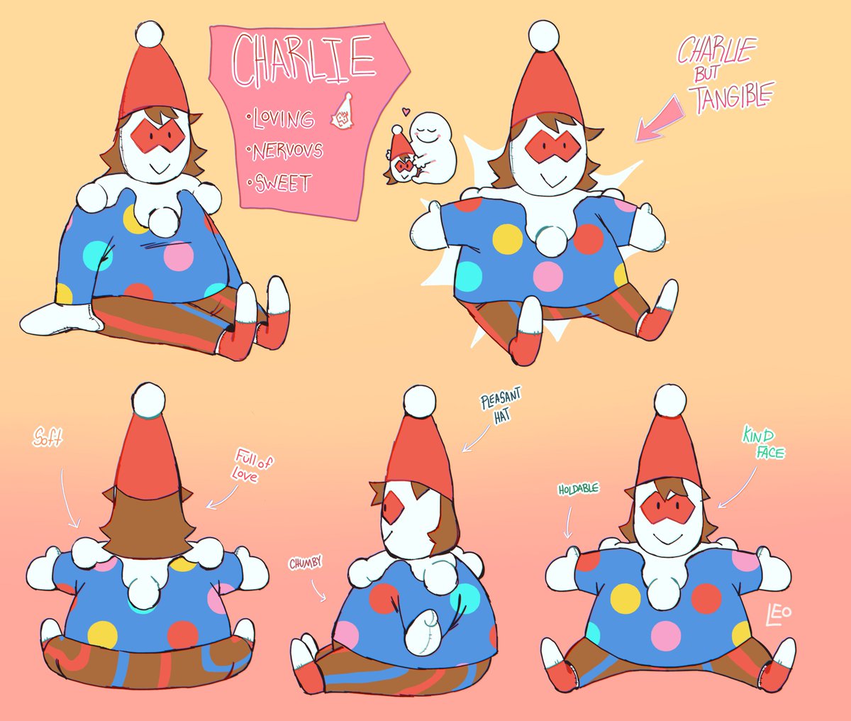 this is charlie in plush form! he is a lovely clown doll who is a little nervous! ive had charlie for 2 years now and he's been with me through a lot! i use his stories to teach about anxiety and coping #MakeshipMe
