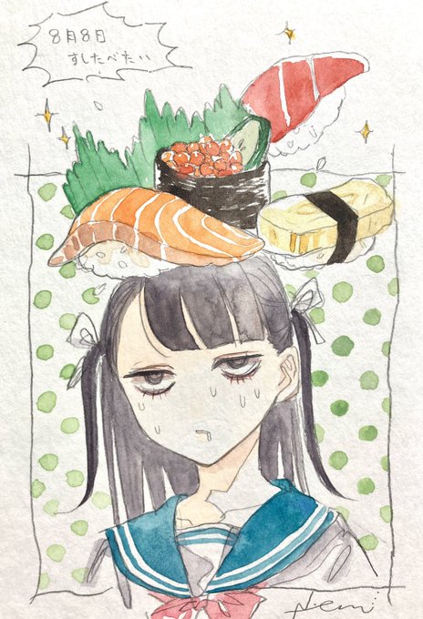2 10 #8月ドローイング 8月8日 すしたべたい 23/08/08 23:42