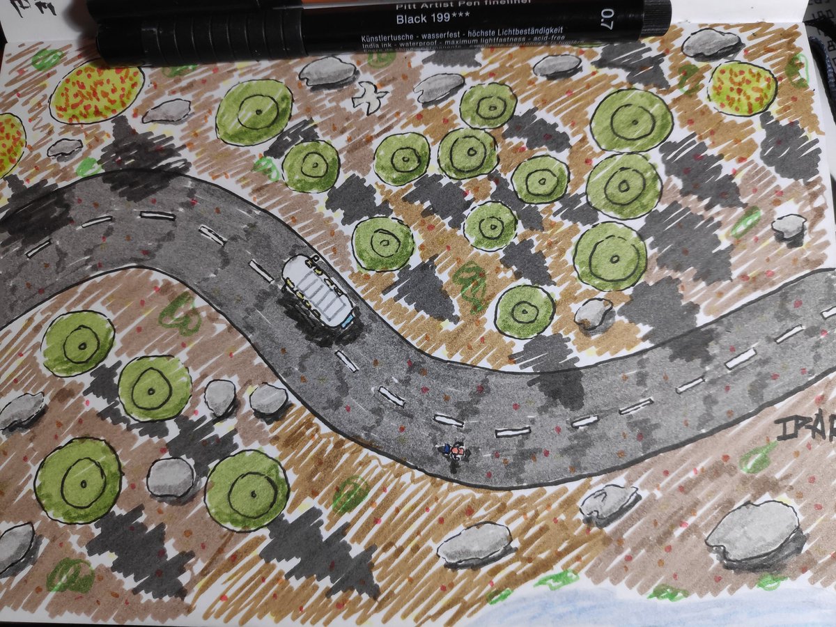 #Inktober #Inktober2022 Burning road... Fude pen is not my favorite pen. Not lot of control but so fun to use... (And yeah, burning road is a song of fu manchu, go listen to it!)