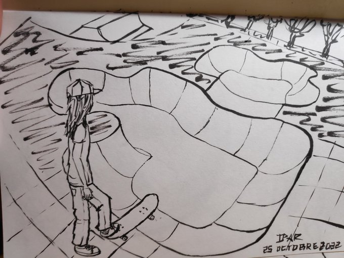 #inktober2022 #Inktober Skateboard ! Not my best, but I tried 😅 The pigma Brush is good. A bit more control than the pentel Brush pen but it's so different...
