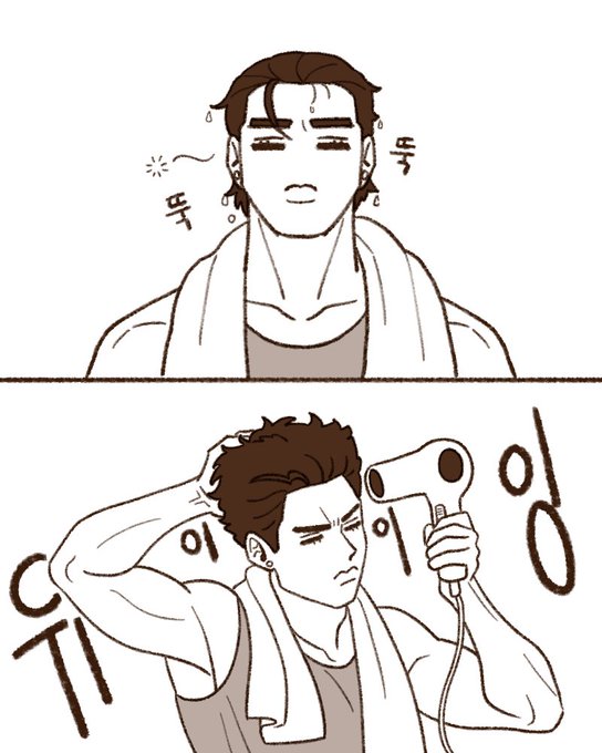 #jjba 죠타로도 곱슬이니까 머리 말리면 엄청 복슬거리지 않을까 (쥬엘조 동거au)