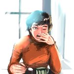 ⑥意外な一面 V3一話より、コーヒーに砂糖をドバっと入れる系男子風見志郎 その他にも、遅くまでほっつき歩いて服のまま昼まで寝てる気楽な学生ムーブ、寝起きの大あくび等々ギャップのある姿をお楽しみいただけます いいよね一話風見志郎… #特撮版深夜の真剣お絵描き60分一本勝負R
