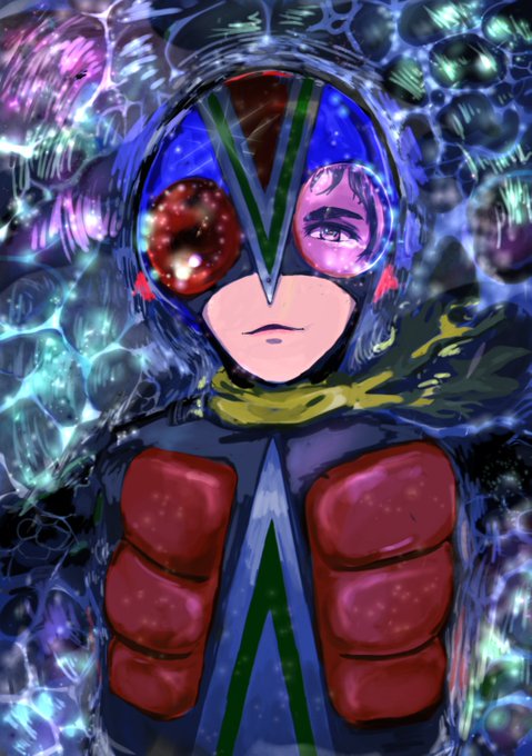 ⑥劇場限定 ディケイド版gacktライダーマン! このgacktマンはV3の存在しない世界線から来たんじゃないかという妄想 結城丈二は、V3がいなくてもデストロンじゃなくても、ヨロイ元帥に陥れられなくても、右腕を失い孤独に戦う運命を背負ってる気がしてる #特撮版深夜の真剣お絵描き60分一本勝負R