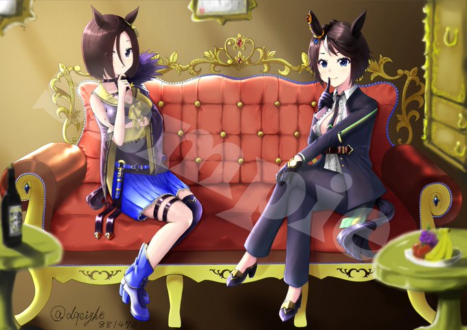 かなり待たせてしましたが…依頼で描きました!エアグルーヴとフジキセキです!…とても大変だったけど最後の方は楽しく描かせて頂きました!( *´꒳`*)