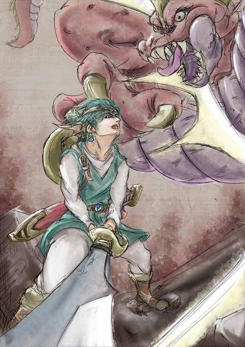 お絵描き完成🎨🖌 あおり構図を描きたいところから始まった落書きが無事着地しました! 「ドラクエ4勇者✖️レグナード」 実際にはありえない組み合わせなんだけどねw ウイングダイブ撃墜の瞬間を捉えました😆✨ 1番男前な主人公だと思ってる。 #ドラクエ #絵柄が好みっていう人にフォローされたい