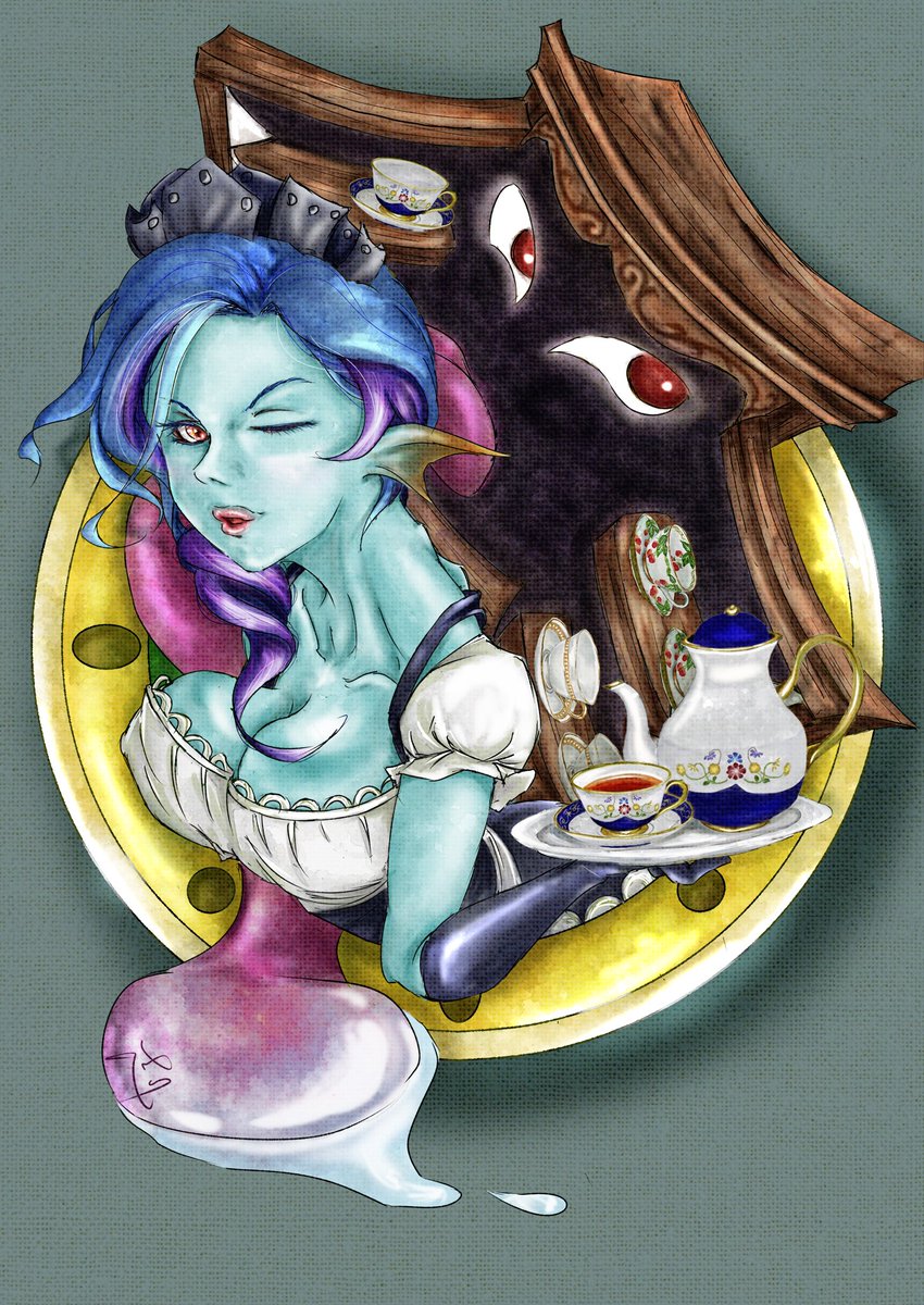 モデル募集企画イラスト完成🎨🖌 記念すべき初企画1枚目、リリさん(@arasriridqx )を描かせていただきました! 純喫茶のウェイトレス姿のリリさんと、たくさんのお客様に愛されるお店を見守り続けて、魂が宿った九十九神のカップボードミミックです😊 ご参加ありがとうございました(๑>◡<๑) twitter.com/dqx_shian/stat…