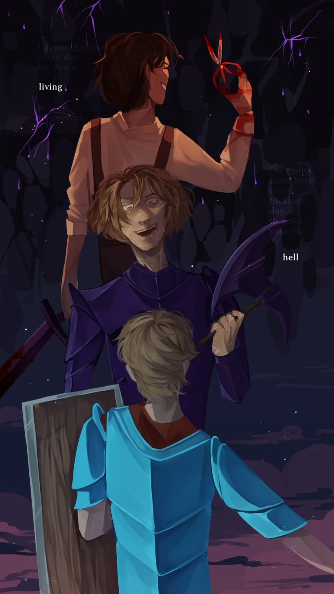 // minor blood , implied FICTIONAL torture + abuse /dsmp /roleplay tell me when you kicked me, did you ever think that i would get up? #dreamfanart #dsmpfanart