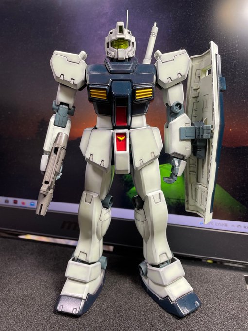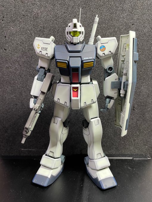 デカール貼って、艶消し吹いた。後は細かい修正で完成です。これはもう完成と言っても良いのではないか?所属はトリントン基地中隊のデカールを使いました。 #ジム #ガンプラ #ガンプラの画像を貼るとRTされると聞いて