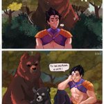 Vgtta es un explorador que tiene la habilidad de entender y comunicarse con animales salvajes. Rbiuss y Sprn son dos osos salvajes q sorprendidos no entienden como V los comprende AJSJJAJA perdón, quería hacer algo con esto #sprndobluque #rubegettafanart #rubegetta