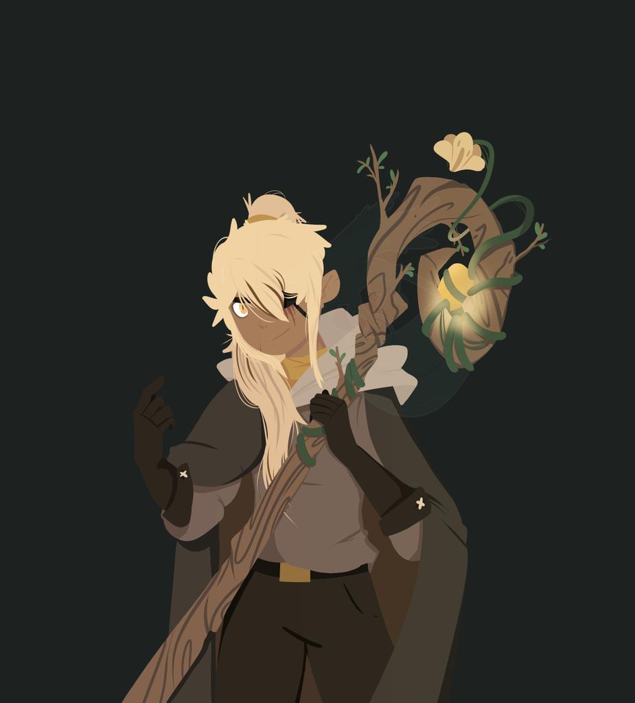 a young boy approaches with vines growing on his staff, his steps leave moss in the snow. #dndart #dndart #DnDcharacter