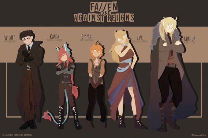 I am so excited for the gala event later this month in the campaign I am running in the Fa//en universe. So I couldn't resist giving the party ( and their gremlin PNPC ) some new drip! #dnd5e #ttrpgart #dndartist #DnDcharacter #dndart