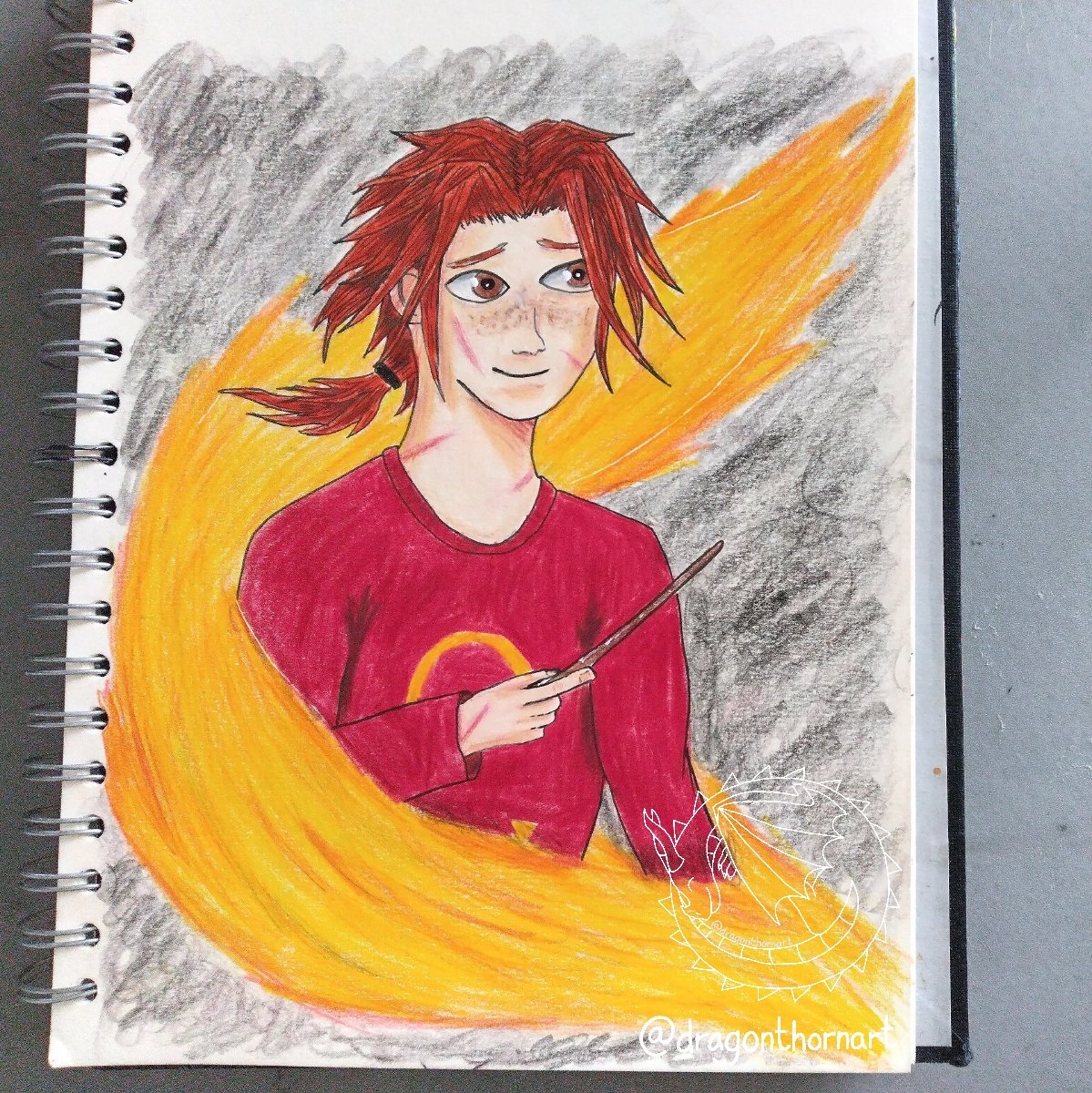 Smaugust day 28 - dragonologist. #smaugust #Smaugust2021 #dragonthornartsmaugust #HarryPotter #hogwarts #charlieweasley #dragonologist #dragon #dragonart #fantasy #fantasyart #colouredpencilart