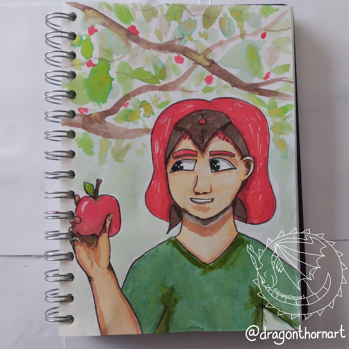 Inktober 2021 day 10 - pick. This is Popii Tsuchi, who has earth powers. #inktober #inktober2021 #inktober2021pick #pick #apple #oc #earth #earthpowers #forbiddenfire #forbiddenfirestory #popiitsuchi #inkart #inkdrawing #societyoffreeart