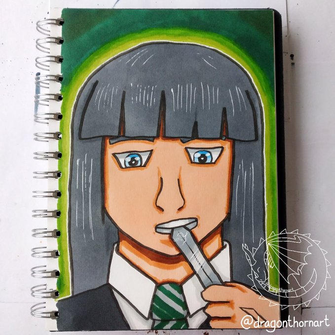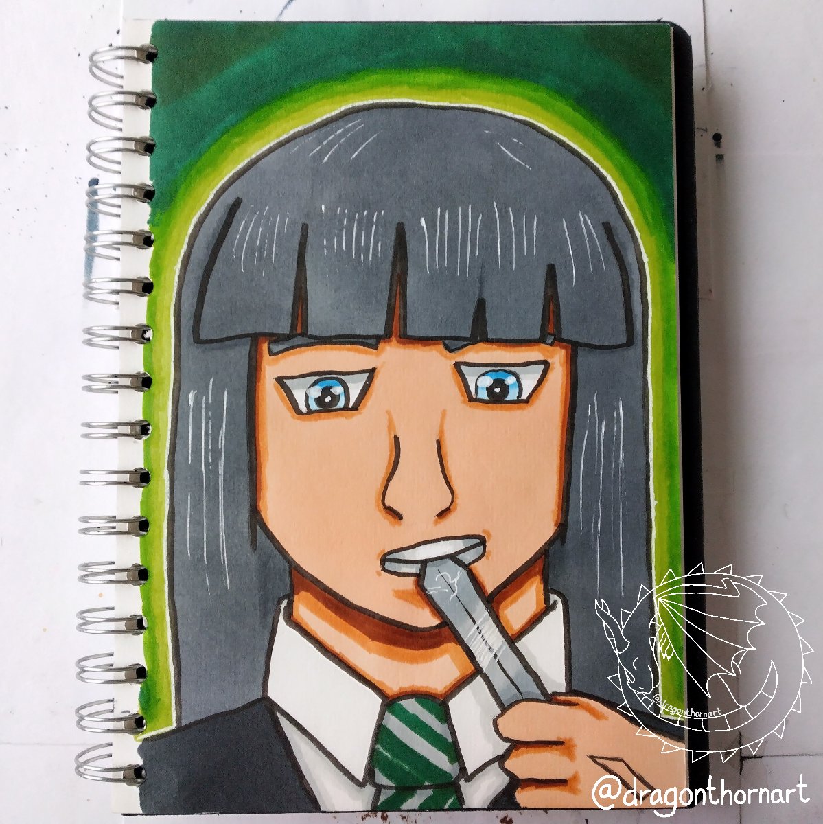 Inktober 2021 day 30 - slither. Hidari Sasunai uses blade powers. #inktober #inktober2021 #inktober2021slither #slither #slytherin #harrypotter #hogwarts #oc #originalcharacter #blade #bladepowers #forbiddenfire #forbiddenfirestory #hidarisasunai #inkart #alcoholmarkers