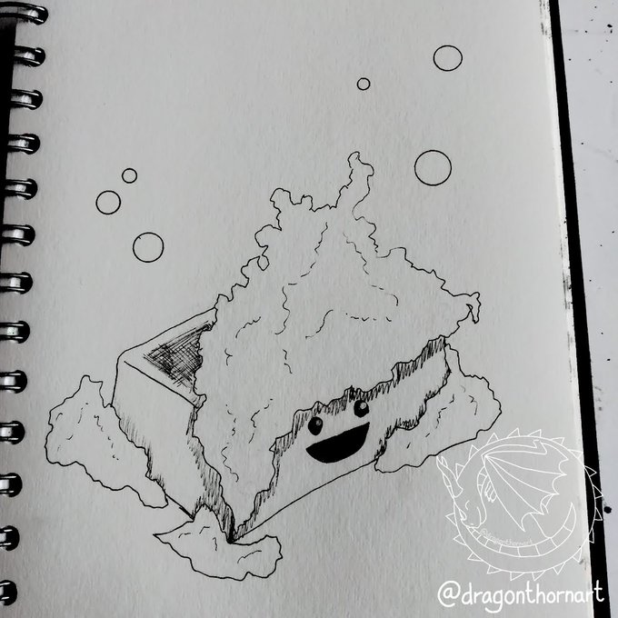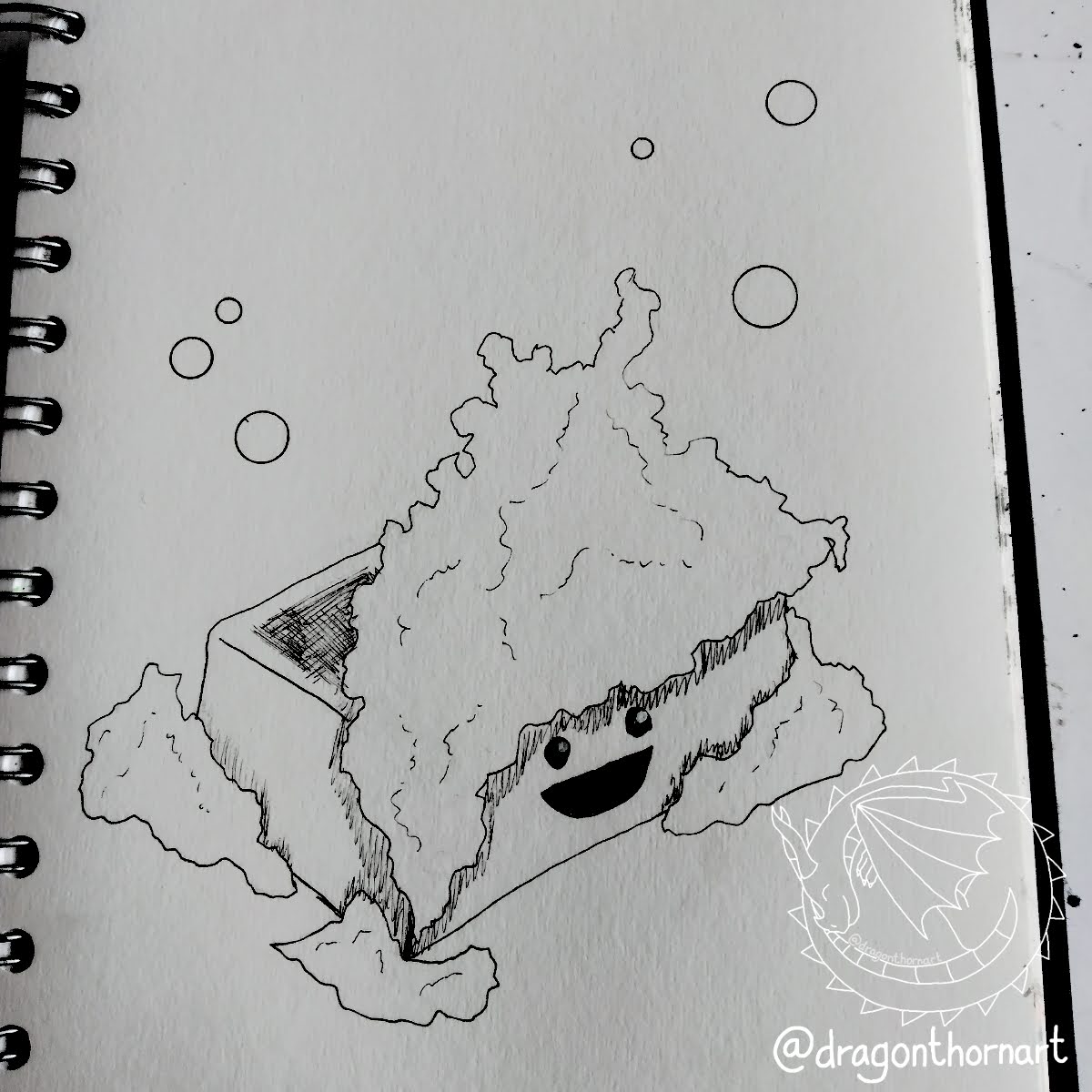 Inktober 52 week 50 - soap. A cute soap bar, born from lack of inspiration for the prompt XD #inktober #inktober52 #inktober2021 #soap #soapbar #soapsuds #kawaii #bubbles #inkart #inkdrawing #penart #pendrawing