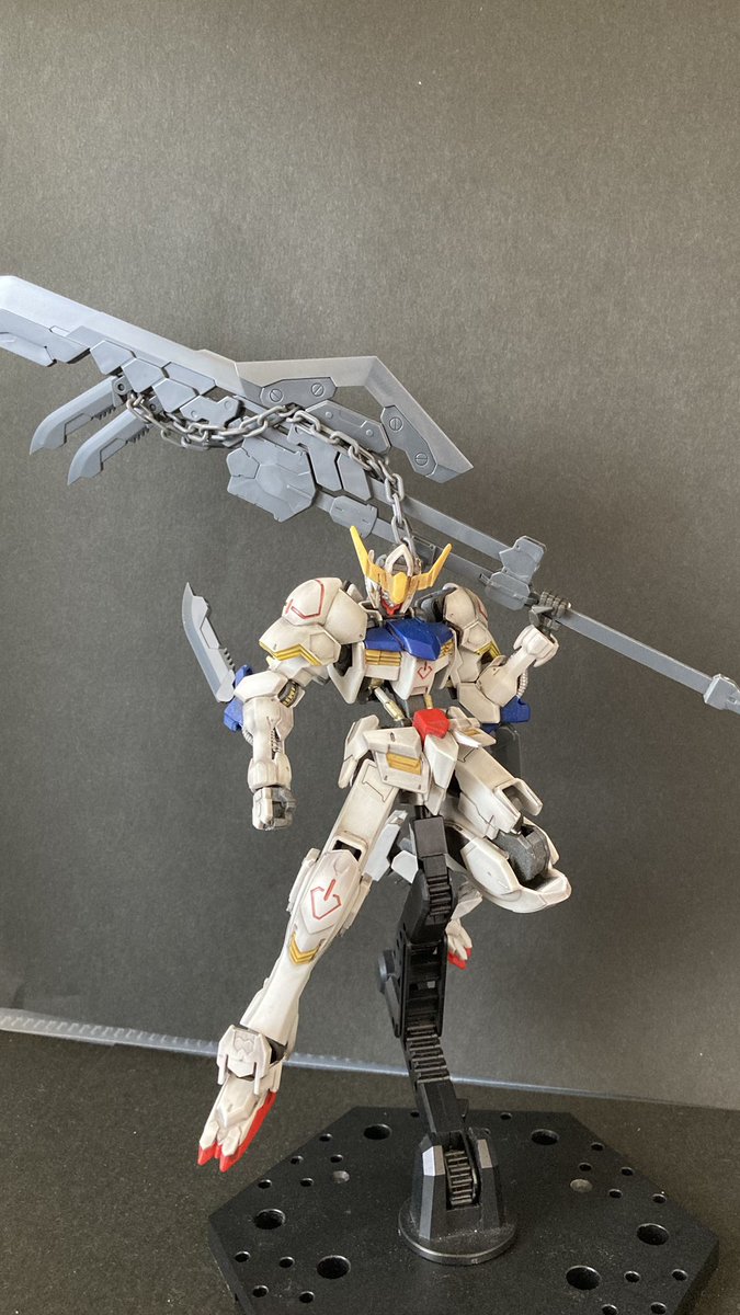 おはようございます😃先日トップコートを吹いたバルバトスをリアルタッチマーカーを使ってリアル感(?)を出してみました。 どうですかね?個人的には上出来だと思っています。 #ガンプラ #ガンプラの画像貼るとRTされると聞いて #ガンプラ好きと繋がりたい