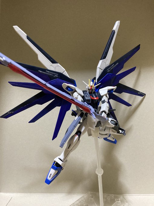 久しぶりの投稿はフリーダムガンダム!デスティニーの武器持たせたらこれやるしかないって思ったサンライズ立ちとバックパックの翼は自分好みに少し色を暗くしました。(ムラは見逃して) #ガンプラ好きな人たちと繋がりたい #ガンプラの画像貼るとRTされると聞いて #ガンプラ初心者 #ガンプラ