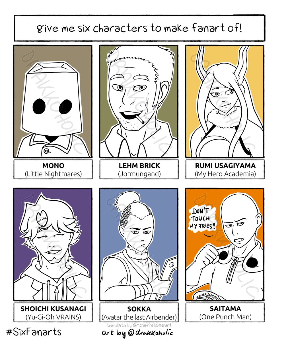 I did the #SixFanarts thing. Template belongs to @mcapriglioneart #artistsontwitter #digitalart