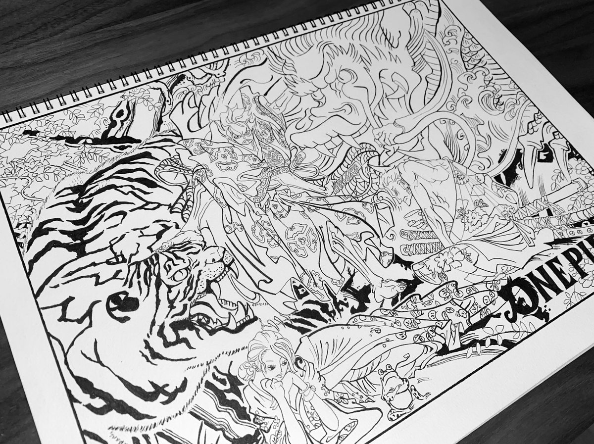 ペン入れやっとおわったー!!塗るぞー!!🤣 #模写 #ワンピース #onepiece #絵描きさんと繋がりたい