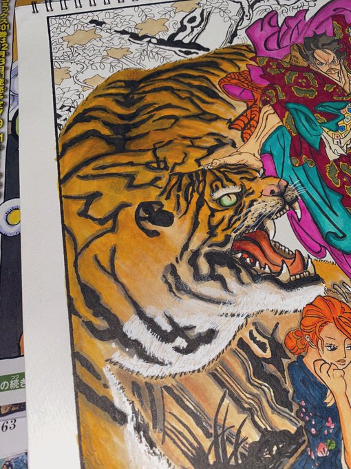 虎さんが個人的には上手く塗れてよかった😓😓あとは完成まで載せないでおこう😙(たくさんのお気に入りに調子に乗っています。) #onepiece #模写 #コピック #絵描きさんと繋がりたい