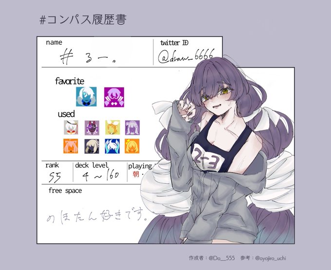 #コンパス履歴書 #コンパス民と繋がりたい #コンパスお絵描き勢と繋がりたい ゆるくお絵描きしてます雑多垢なので何でも呟きます🌚🌚 ♡rt回ります〜〜!! コンパス枠埋め誘ってください🥳💗