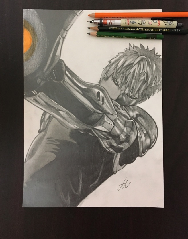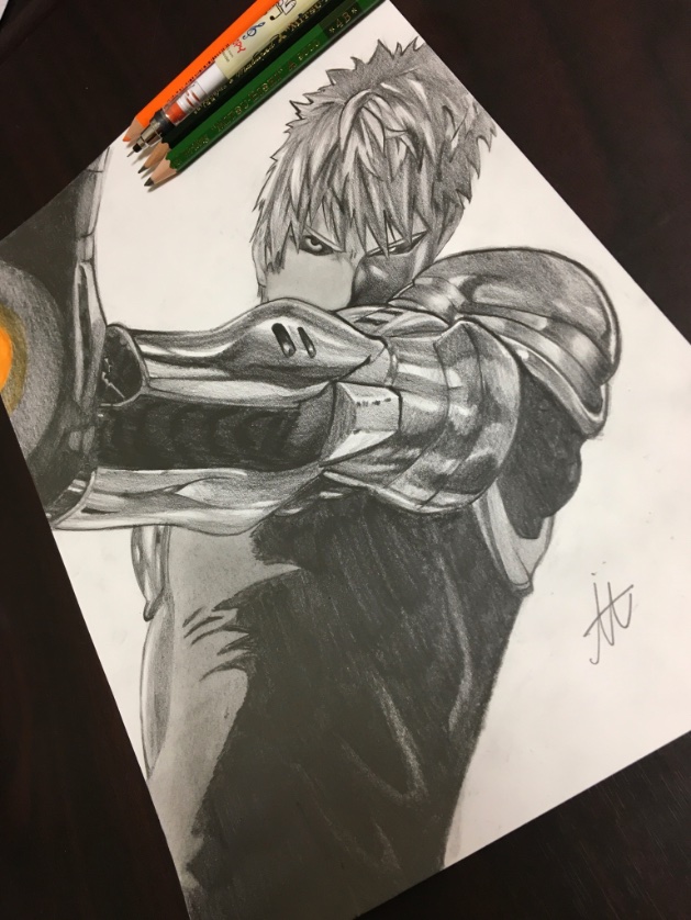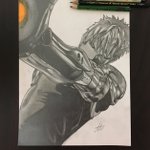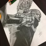 #ワンパンマン よりジェノス描きました〜! 手がこるくらいめっちゃ頑張ったので良いね、RT下さい🙌🙌🙌 #模写 #ジェノス #鉛筆画 #少しでもいいなと思ったらRT #かっこいいと思ったらRT #漫画 #onepunchman
