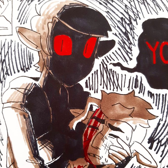 Day 13 - Mask It was Edric, he drew on Hunter's mask. #judraw #witchsona #ocxcanon #goldric #inktober #shiptober #inktoberday13 #day13