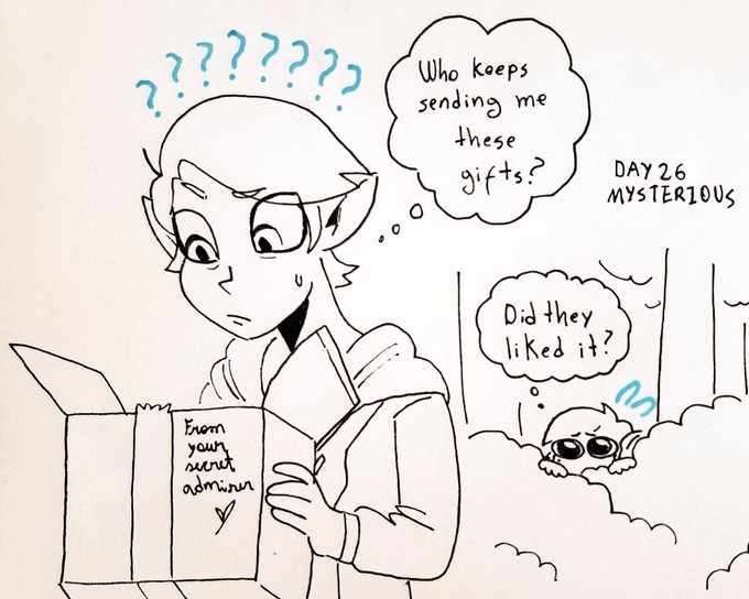 Day 26 - Mysterious Since Edric's mom doesn't let him date anyone without a title, he can't let her know he's sending gifts to Bruno, so he does it anonymously. Bruno is starting to get worried. #judraw #ocxcanon #edricblight #tohoc #shiptober #inktober #inktoberday26 #day26