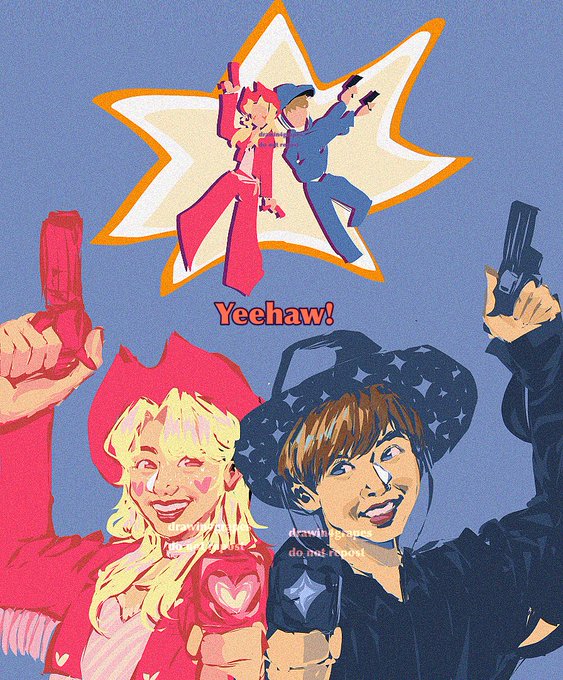 // guns decided to put my own little twist on @cowboyracha’s dtiys and added cowboy yeosang 🤠💖✨ [#ATEEZfanart #yeosang #cowboyrachadtiys #ATEEZ #straykidsfanart #felix #dtiys]