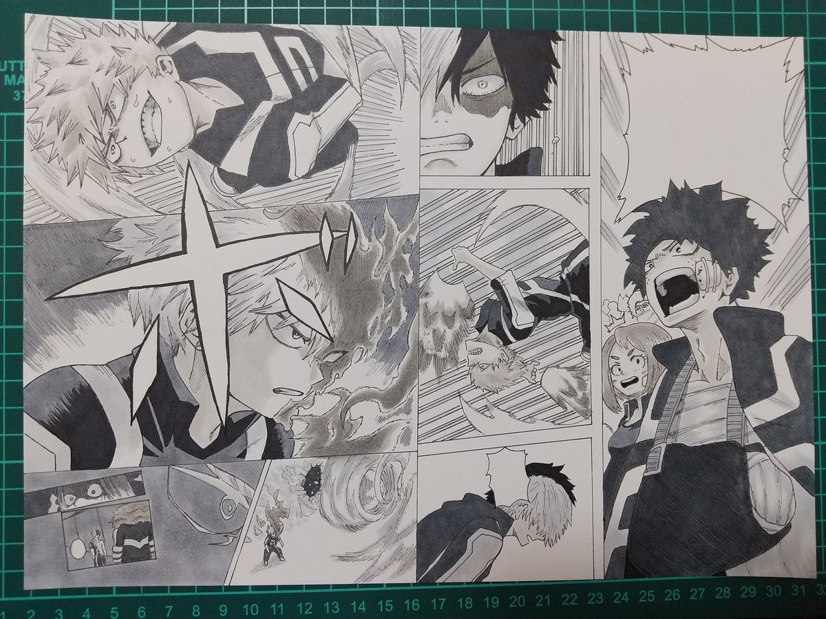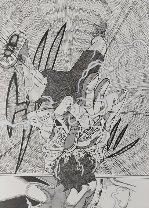 僕のヒーローアカデミアから 見開きページを模写しました。 反応貰えると嬉しいです。 下書きはじめは随分前ですが完成させたのは今月ってことでタグ… |´-`)チラッ #今月描いた絵を晒そう #ヒロアカ #模写
