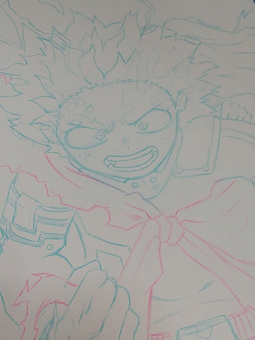 これ描きあげれたらアイコン候補。 緑谷出久 壊理ちゃん(チラ見) ワンフォーオールフルカウル100% 下書きちゅう。 #僕のヒーローアカデミア #ヒロアカ #MHA #模写 #お絵描きさんと繋がりたい