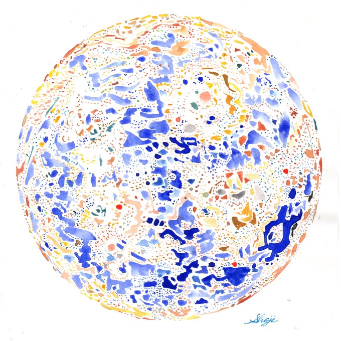 -水星- Mercury Watercolor size( B5 182×257mm) 19.Oct.2020 #美術 #アーティスト #アートワーク #点描画 #ギャラリー #ドローイング #絵画 #水彩 #イラスト #絵 #illust #contemporaryart #artwork #artist #artcollector #artcurators #artlovers #artgallery #artistic #waterco