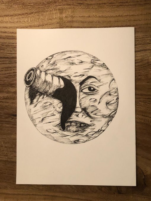 Inktober Day 18 • Moon Le Voyage Dans La Lune #inktober2021 #inktoberday18 #moon #drawing #ArtistOnTwitter