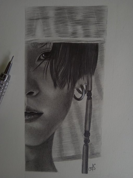Não consegui me decidir, então acabei desenhado os dois, olhos fechados e olhos abertos aqui está as duas versões 💜🌻 #TAEHYUNG #btsfanart