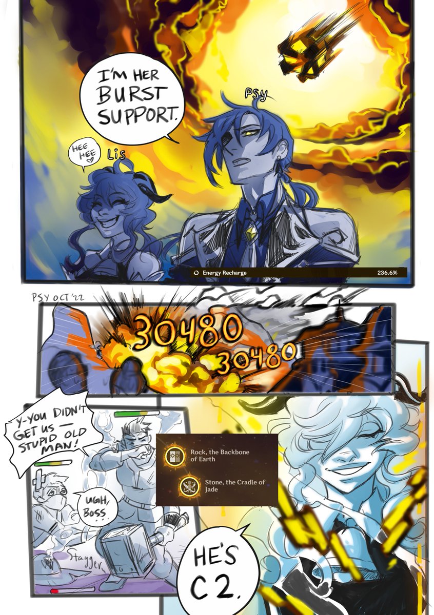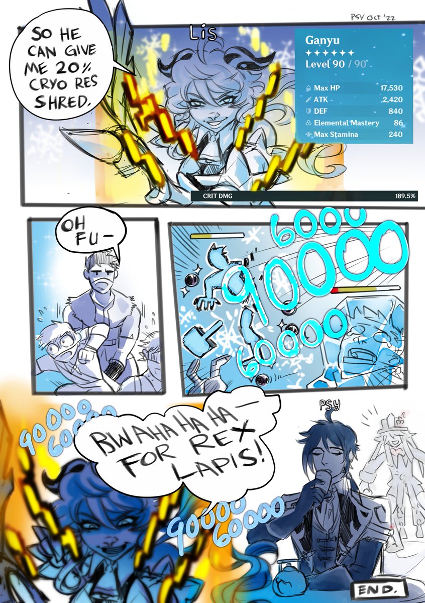 A comic about co-oping with my buddy Lis in #genshinimpact. Hope you enjoy our chaotic antics lol #genshinimpactfanart #comic #ganyu #zhongli