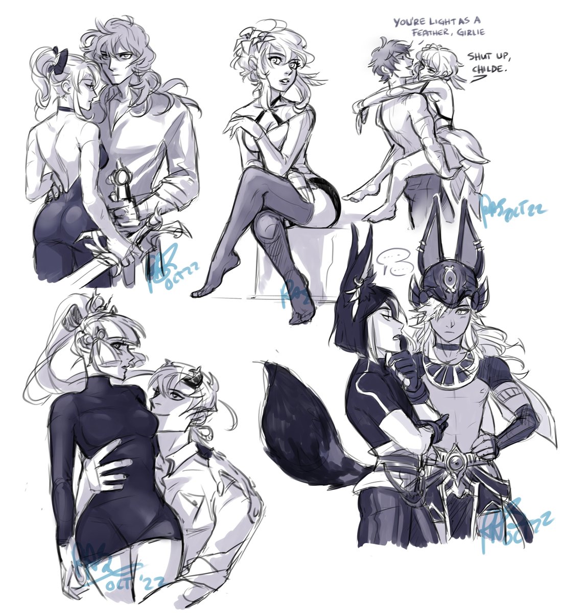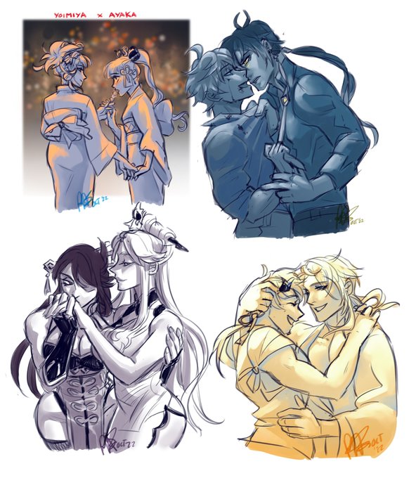 Did some cute #genshinimpact couples sketches! I hope you guys like it. #jeanluc #chilumi #ayakathoma #cynonari #genshinimpactfanart