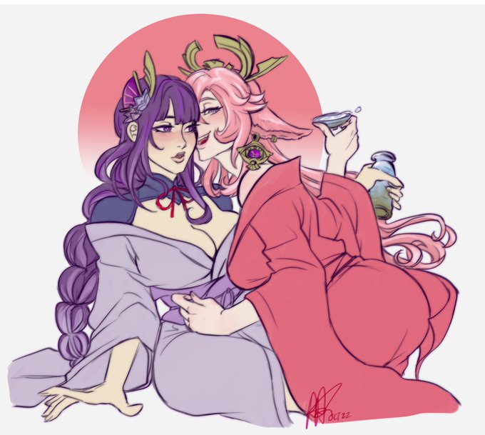 I love drawing #eimiko so much! Especially getting tipsy at an onsen. #genshinimpact #genshinimpactfanart #yaemiko #raidenshogun