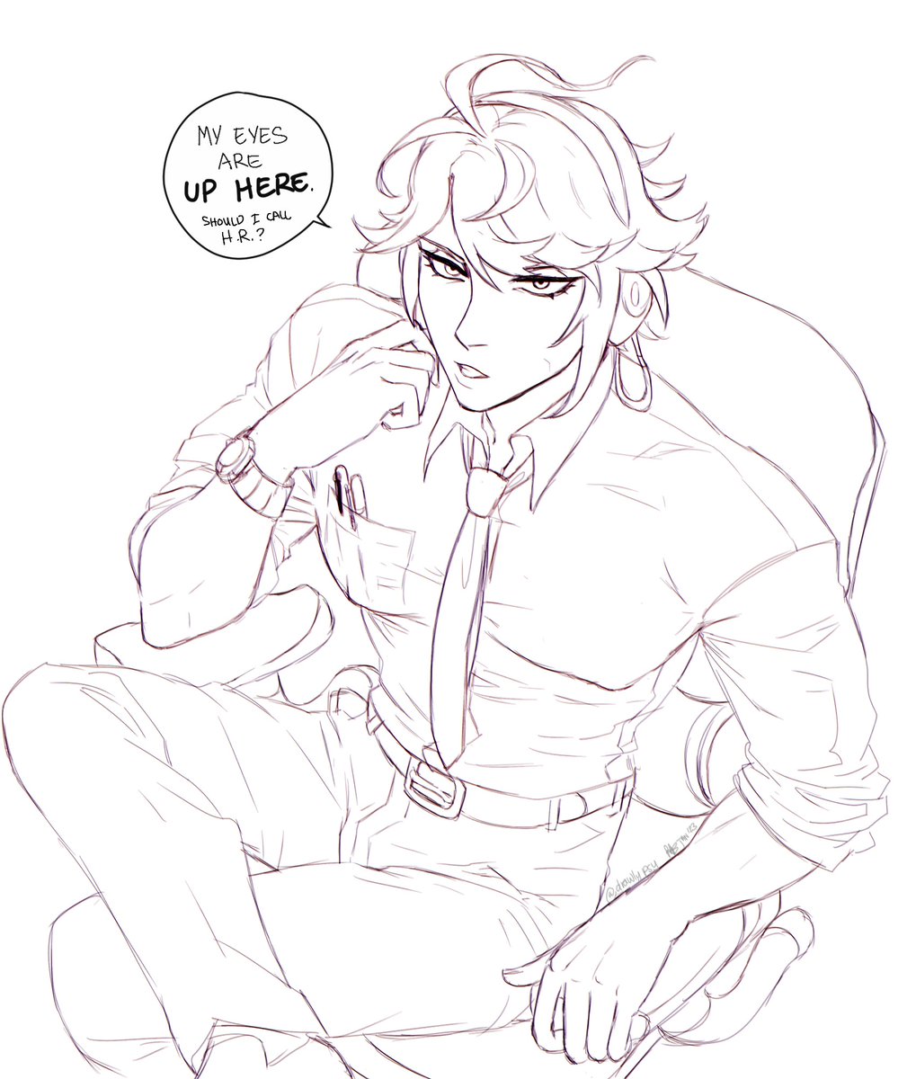Did a cute sketch of Office AU #alhaitham ! I feel like he'd be the type to follow all the rules exactly, but somehow end up doing little work. Guarantee you Kaveh helped him pick out his office attire. #genshinimpactfanart #doodle