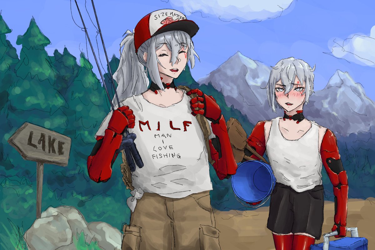 Archivist and Legatus go fishing together ❤️🐑 I feel like Le-chan wouldn't enjoy these Doomer activities, but still tags along. #Fulgatus #Artchivist #Legartus (I drew this with my non-dominant hand, I'm proud)