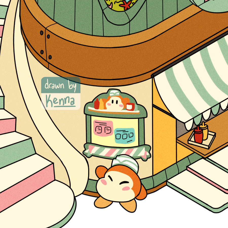 Soooo #KirbyandtheForgottenLand was an absolute delight and I love the scenery and Waddle Dee Town buildings. #kirby #kirbyfanart