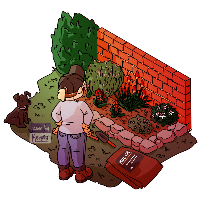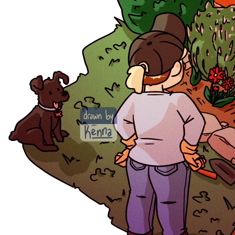 I would say Ella is a good gardening buddy, but I'm usually just trying to keep her from eating mulch. 😝🌿 #artistsontwitter #digitalart