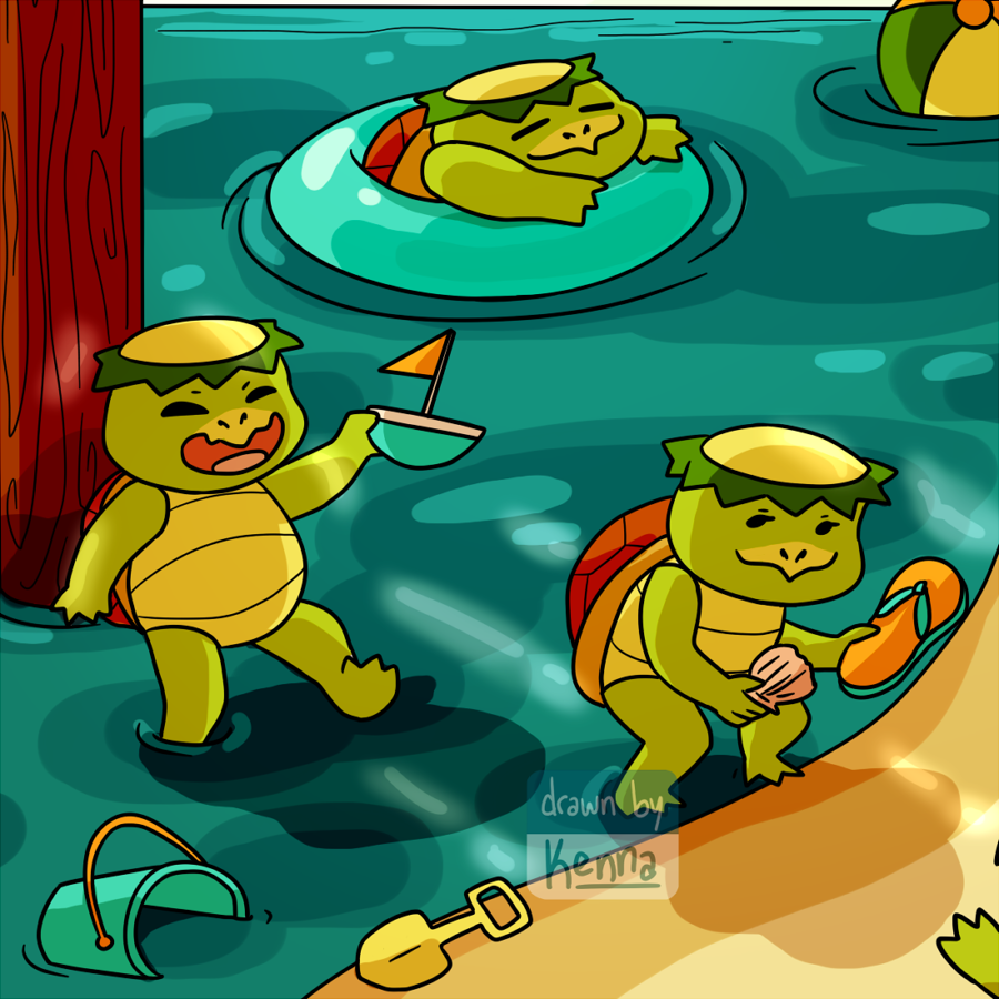 Doing some more IG prompts, this time with #jubeachly. First up we have some kappa buddies hunting "treasure" under a boardwalk. 🌞 #illustration #artistsontwitter