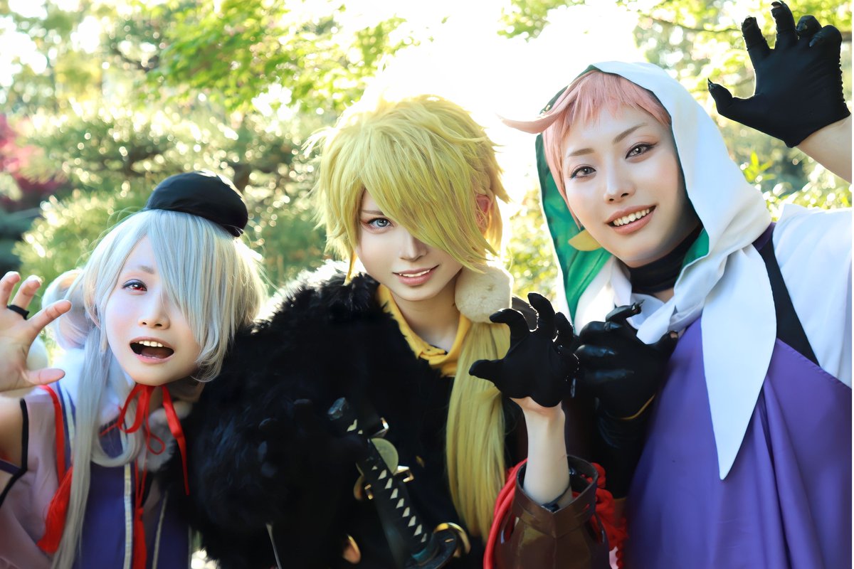 ※コスプレ 刀剣乱舞 せーのっ 「「「がお~~っ!!」」」 (「` ・ω ・´)「 ✨ がおがお撮影(@23minazuki ) がおがお獅子王(@ryu_ki_chan ) がおがお岩融(@do51san ) がおがお今剣れち