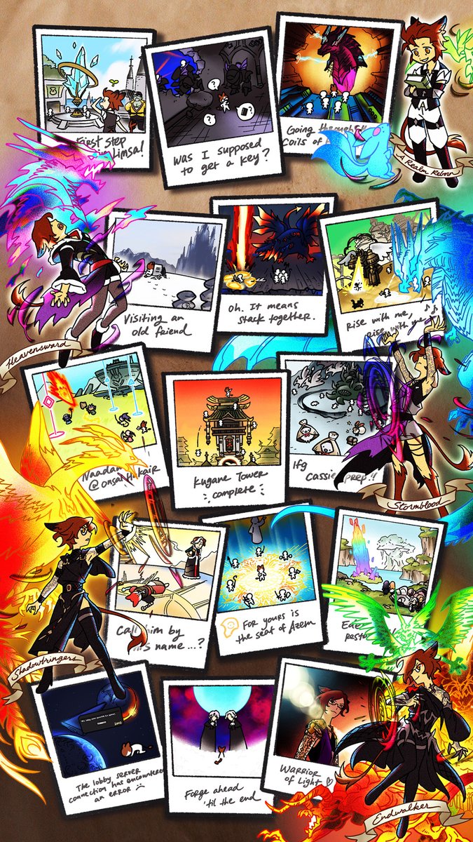 skldjfslf i'm so happy my cheesy little entry made finalist 😭 i was rushing to draw this while at acen and fanime but i wanted to include all my memories over the expansions so bad... everyone's entries are soooo good ahhh twitter.com/FF_XIV_EN/stat…