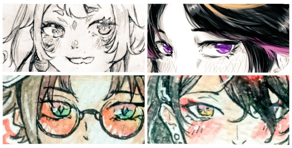 Omg I use the wrong hashtag before so I repost it:;;;;;; ----- About members' eyes I've drawn on my arts! Can u recognize each one 👀? . #DrawMillie #DrawKosaka #Reimural #Artsuki #pendorART #YaminoArt #MystArt #Akurylic