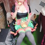 おはよのおそくほ!! 甘楽さん @kanra_cosab から昨日の速報用写真貰ったから載せる!! データ何してもいいので!って言われたから血の悪魔風味の色差分写真も作ってみたよ🤭 #ハコアム大阪 #cos #cosplay
