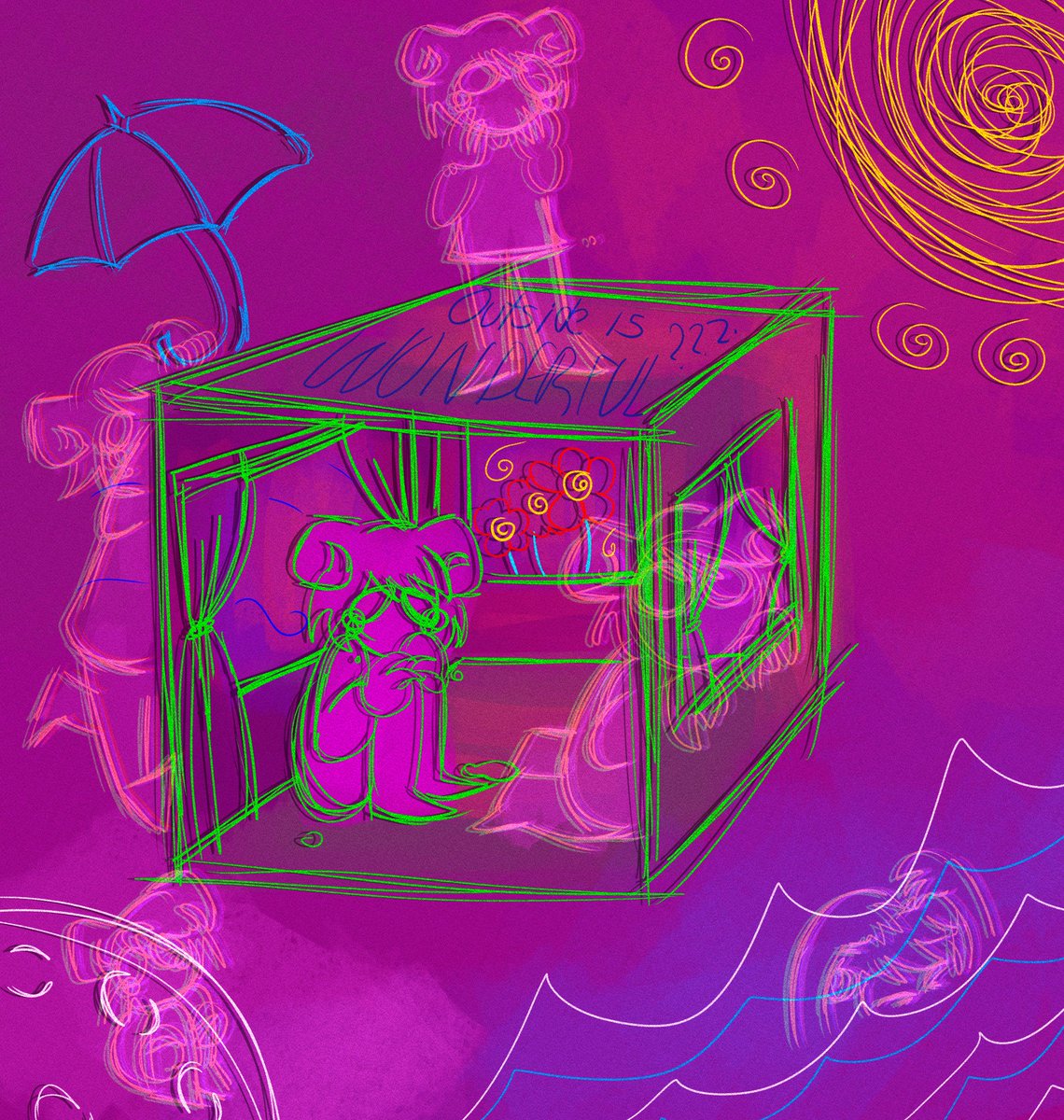 TW// Saturated colors, dream/weird core, nightmare. Wonderland. #Dreamcoretoober #dreamcore #Inktober #Nightmare